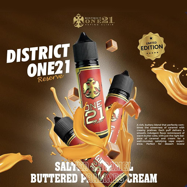 DISTRICT ONE21 RESERVE 60ML: Salted Caramel Buttered Pralines Cream 12mg